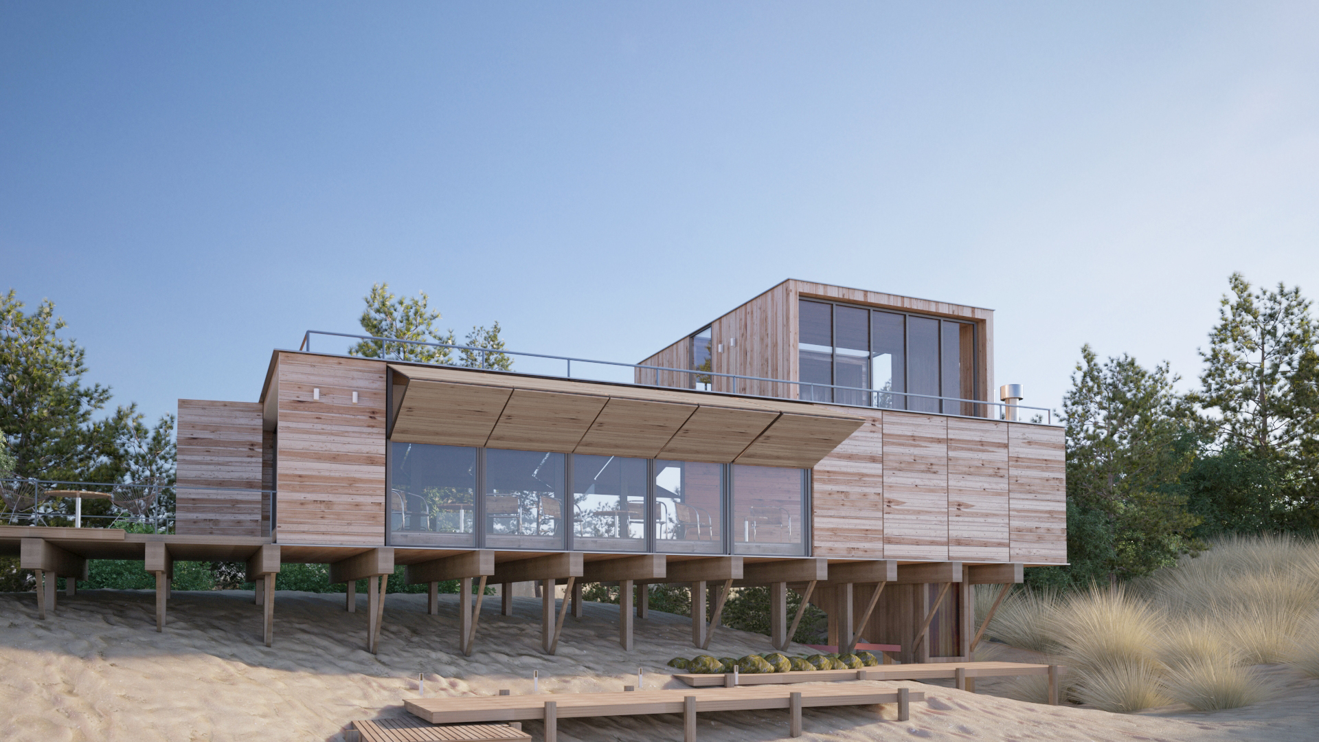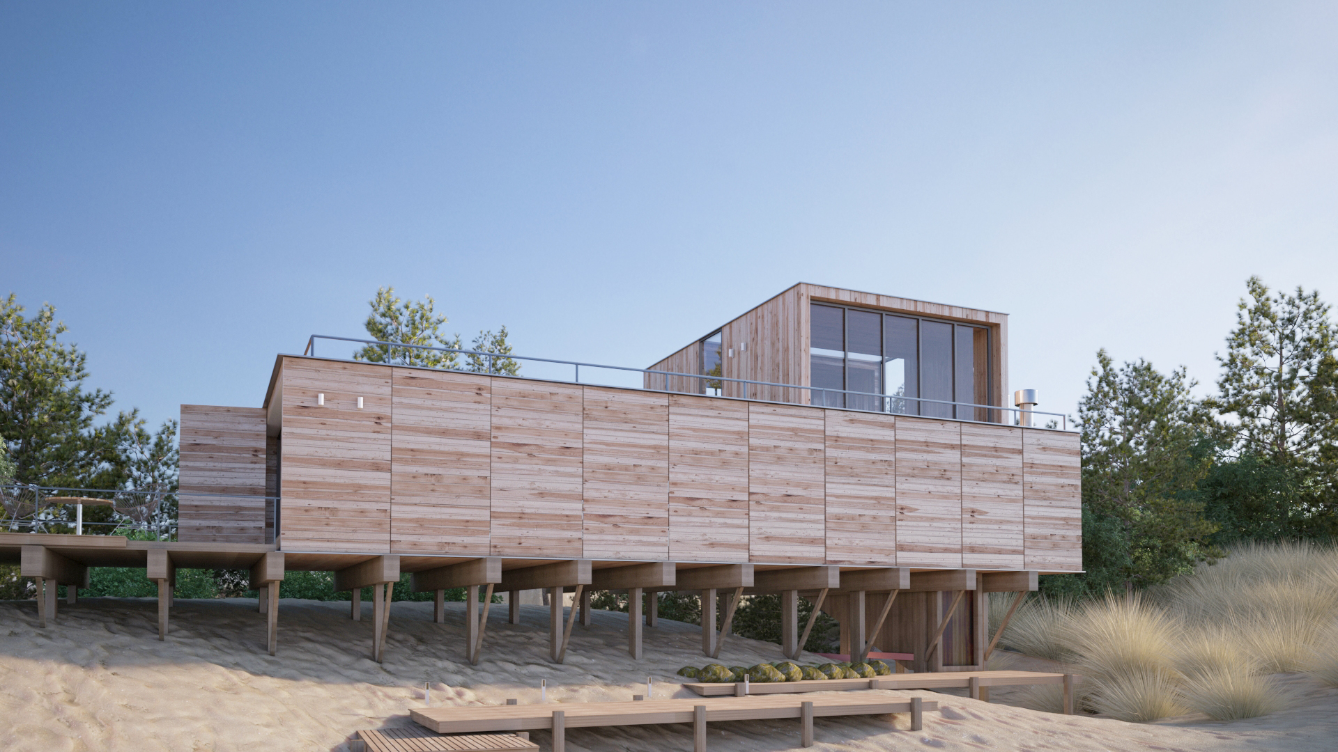 Se apela a una intervención sobre el paisaje que se perciba como no invasiva. Esta amabilidad se propone no desde aspectos formales ni tecnológicos, ni artilugios del camuflaje, sino a través de la simpleza morfológica, la limpieza material y la reversibilidad tecnológica.