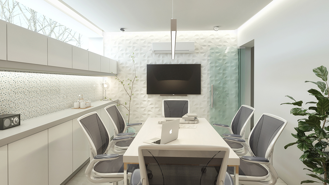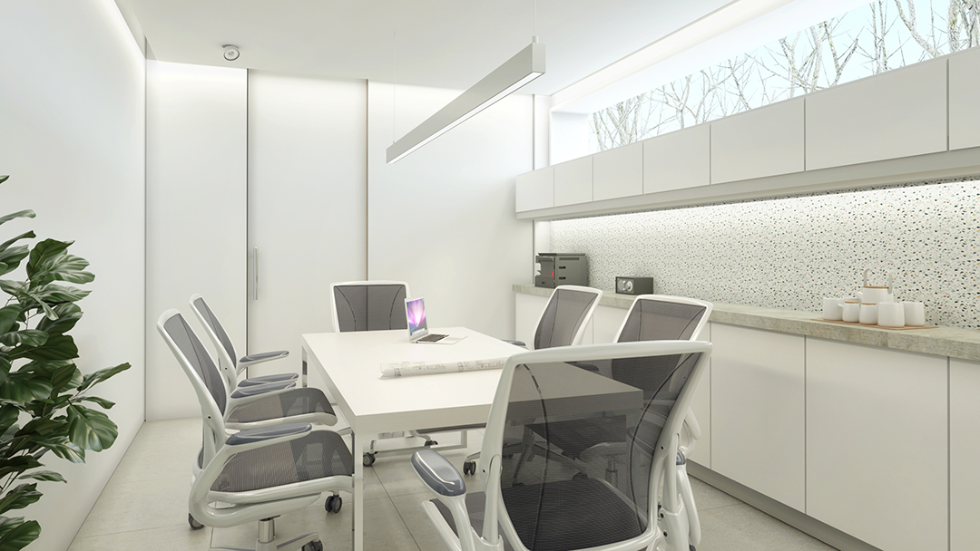 Los planos transparentes se piensan con cámara de aire y vidrio laminado, buscando soluciones que aseguren poca pérdida térmica y aporten a la eficiencia energética del edificio. La misma premisa alcanzará a las cubiertas y a los planos de cerramiento opaco.